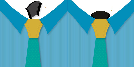 Die Smargiasso-Knotenabdeckung passt perfekt auf die meisten Krawatten. Wichtig ist, die Größe des Knotens entsprechend der Dicke des Stoffes zu berücksichtigen. Um Ihnen dabei zu helfen, befolgen Sie die folgenden Anweisungen:1 - Der Knoten sollte symmetrisch sein, wie der Windsor-Knoten oder ein ähnlicher Knoten